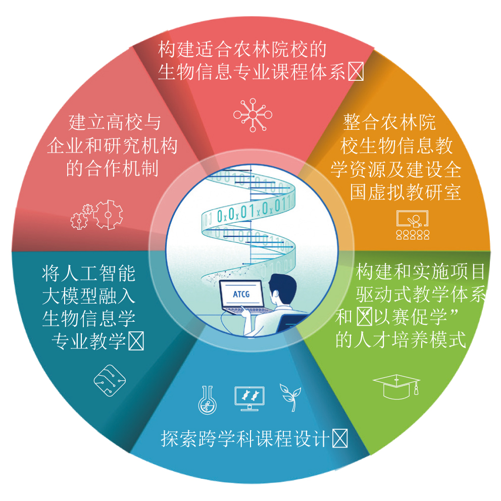 生物信息学作为应用面广的新兴交叉学科, 对于促进绿色农业发展具有重要意义。在新农科背景下, 农林院校生物信息专业创新人才培养面临新的挑战。基于新农科对生物信息专业的人才需求以及河北农业大学的实践探索, 提出6条具体可行的培养策略: 建设适合农林院校的生物信息专业课程体系; 整合全国农林院校生物信息教学资源以及建设全国虚拟教研室; 构建和实施项目驱动式教学体系和“以赛促学”的人才培养模式; 探索跨学科课程设计; 将人工智能大模型融入生物信息学专业教育; 建立与企业和研究机构合作的机制。随着教育政策和制度框架的不断优化和更新, 将培养出高质量的生物信息专业创新人才, 助力我国农业现代化建设和农业可持续发展。