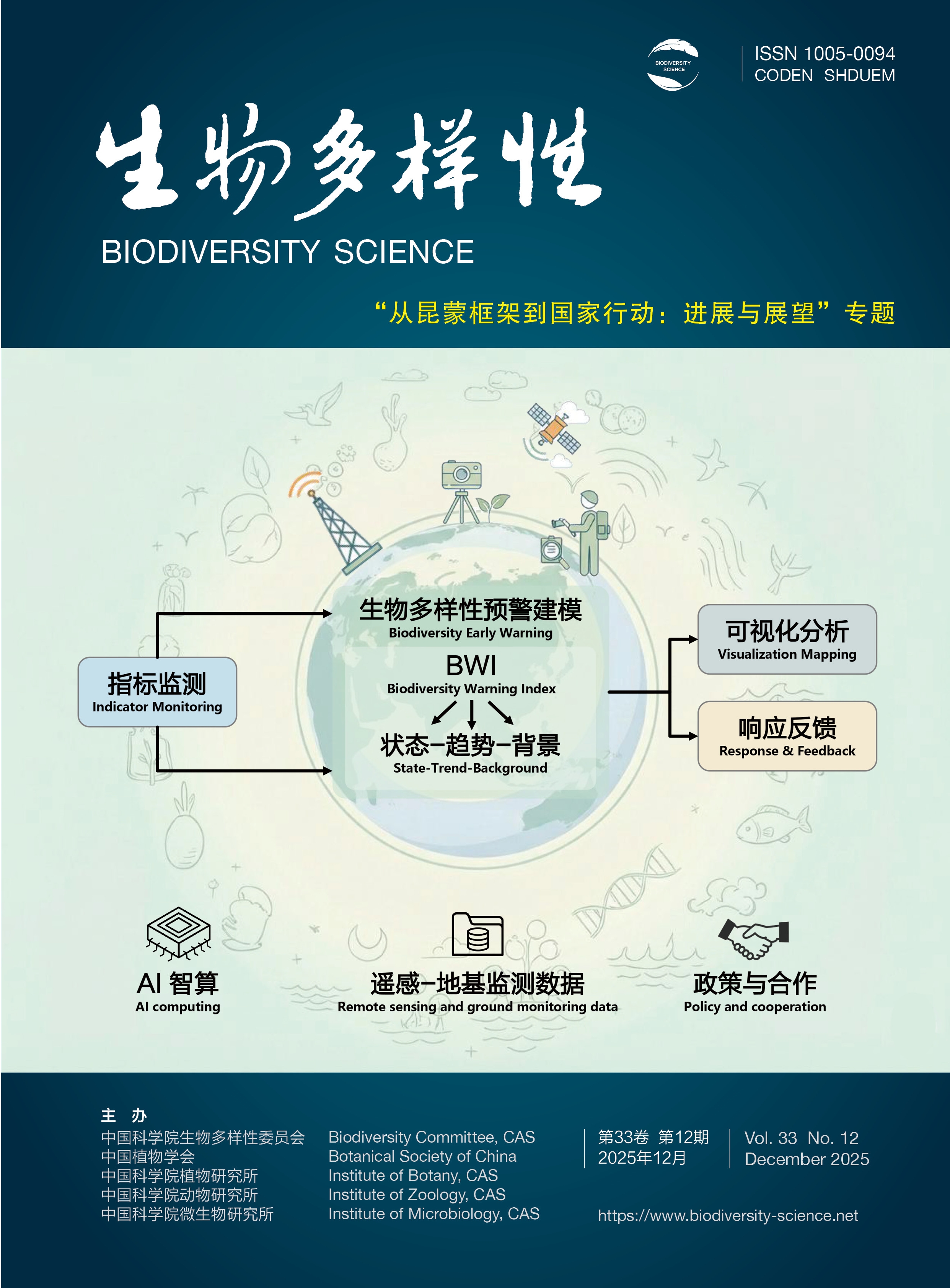 明晰物种间的空间关联网络是理解群落结构的关键, 有利于揭示种间生态学关系和阐述物种的共存机制。在秦岭北坡的复杂生境中, 黄喉貂(Martes flavigula)为中型食肉动物的代表, 对动物种群规模及植被资源分配的影响逐渐增加。本研究对秦岭主梁北坡2019–2024年所获83台红外相机数据进行分析, 构建黄喉貂与该区域地栖鸟兽的种间关联网络。结果显示: (1)在拍摄到的6目13科29种地栖动物中, 黄喉貂与14个物种存在空间关联, 其中黄喉貂与野猪(Sus scrofa)、小麂(Muntiacus reevesi)、中华扭角羚(Budorcas tibetana)和毛冠鹿(Elaphodus cephalophus) 4个物种呈偏利生态学关系, 与其余10个物种呈对称生态学关系。(2)黄喉貂对该区域群落稳定性的贡献率排名第二, 仅次于川金丝猴(Rhinopithecus roxellanae)。关联网络中共识别出14个核心物种(如川金丝猴、毛冠鹿和亚洲黑熊Ursus thibetanus等)和9个外周物种(如中华鬣羚Capricornis milneedwardsii和隐纹花鼠Tamiops swinhoei等)。黄喉貂在食物网中占据核心节点, 是网络中最积极的物种之一, 特别在大型食肉动物稀少的秦岭森林生态系统中, 对维持群落稳定发挥着重要作用。