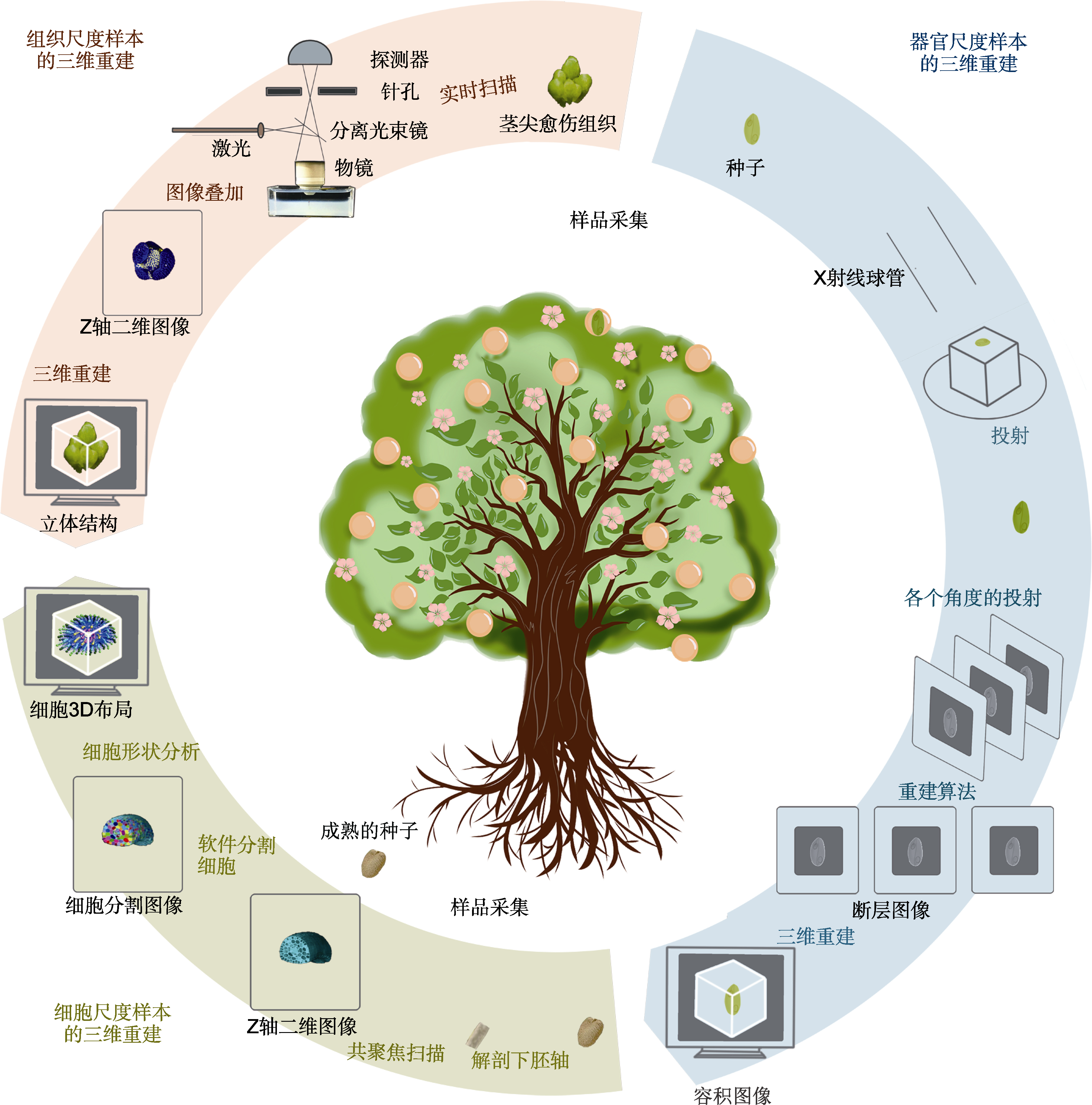 Abstract: 3D reconstruction technology involves using computer graphics and image processing technologies to extract the geometric and topological information of the target object from the two-dimensional image data. This information is then used to create a three-dimensional mathematical model that can be processed by a computer, enabling the virtual reconstruction of the target object. In plant science research, the construction of three-dimensional models has become an effective way to study plant growth and development, morphological structure and functional mechanism. These models provide robust support for multi-scale imaging, measurement and analysis, demonstrating significant application potential in the field of agriculture and forestry. In recent years, advancements in plant 3D reconstruction technology have led to diverse applications in botanical research, covering plant morphological structure modeling, growth and development dynamic monitoring, and plant breeding. In this paper, we summarize the development process of 3D reconstruction technology and its application in plant studies across different scales (from organs and tissues to cells). We focus on the basic principles and applications of these technologies, aiming to provide theoretical and technical support for multimodal cross-scale imaging and plant phenotypic and functional research. Additionally, this work offers a novel approach to understand the principles of plant growth and development and the mechanisms underlying their responses to environmental changes.