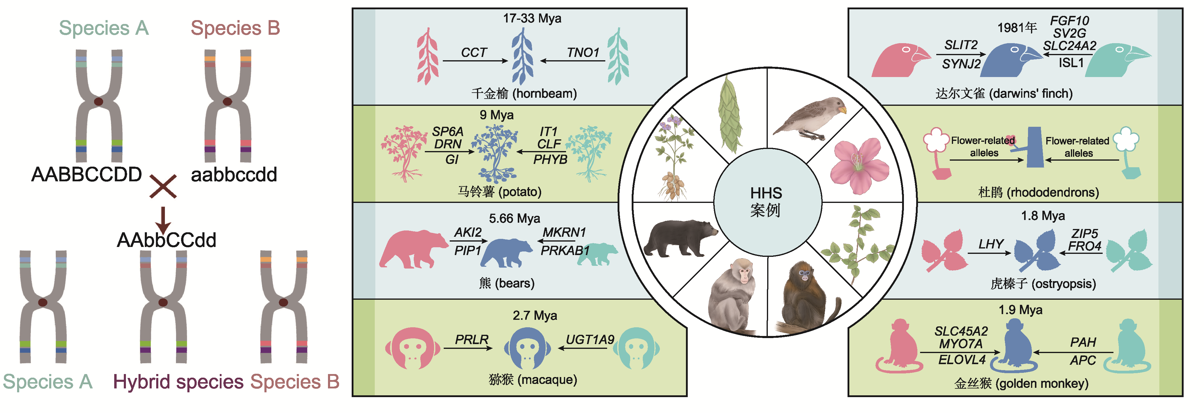 Abstract: Recent research has discovered that an ancient homoploid interspecific hybridization event between ancestral species of the tomato lineage (Solanum sect. Lycopersicon) and sect. Etuberosum lineage in the nightshade family (Solanaceae) gave rise to the ancestral species of the potato lineage (sect. Petota) and generated the innovative "potato" tuber trait. This hybridization event not only introduced this key innovative trait but also triggered the exploitation of new ecological niches, ultimately leading to the explosive emergence of species within the potato clade. This study, together with related case studies in recent years, collectively reveals the universality of the molecular mechanism of homoploid hybrid speciation—namely, "generating innovative traits through the alternate inheritance of highly diverged alleles from both parental lineages". These findings hold significant implications for revising the traditional bifurcating speciation model and advancing the paradigm shift in artificial breeding practices.